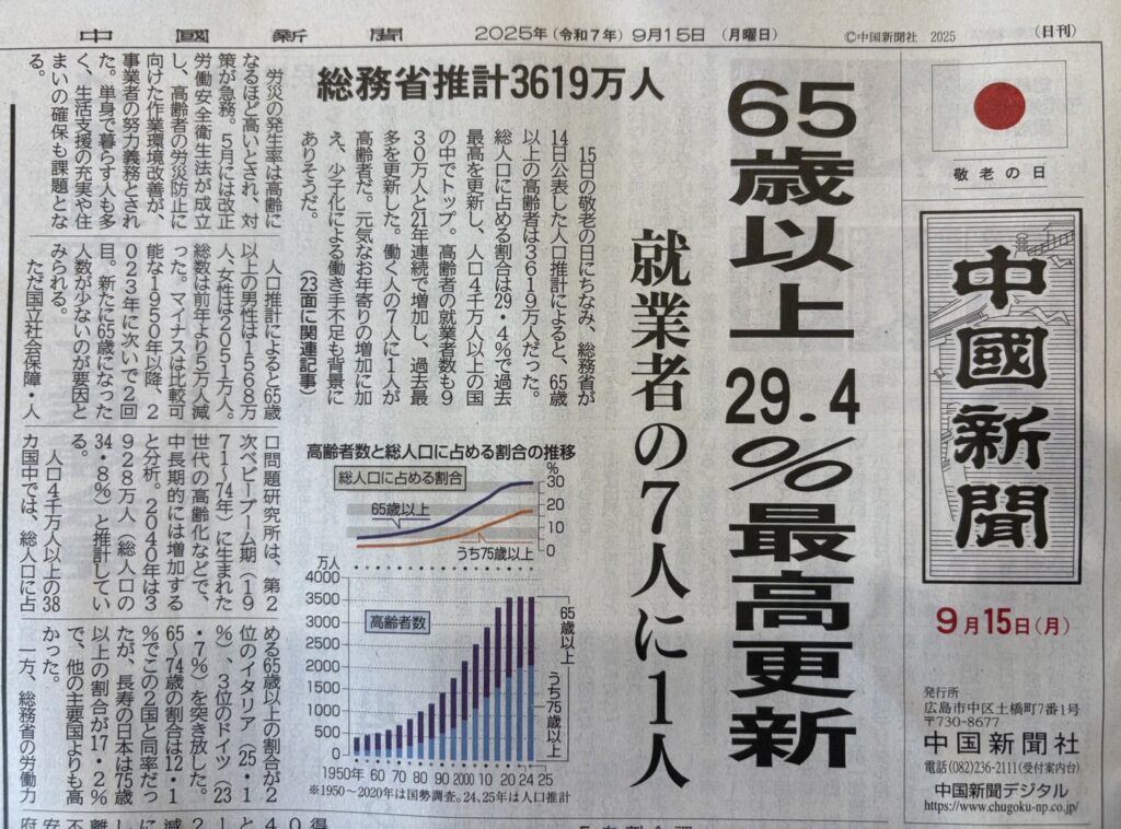 総人口に占める割合は29.4%と過去最高を更新しました。